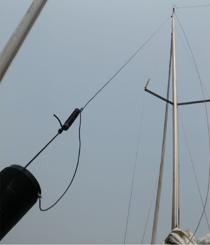 Perhaps more critical were the antenna and RF grounding systems. The actual radiating element was a 38-foot long piece of #14 wire attached to the highest point on the mast. Grounding was accomplished by using the vessel’s cast-steel keel and a couple of 30-foot wires near the gunwales. Tuning and matching were achieved using a loading coil and variometer, involving a total of 1,120 μH of inductance. Operation was coordinated using a South Coast 2-meter FM repeater, and the 630-meter operation was scheduled for late morning and early evening. The propagation mode was ground wave.