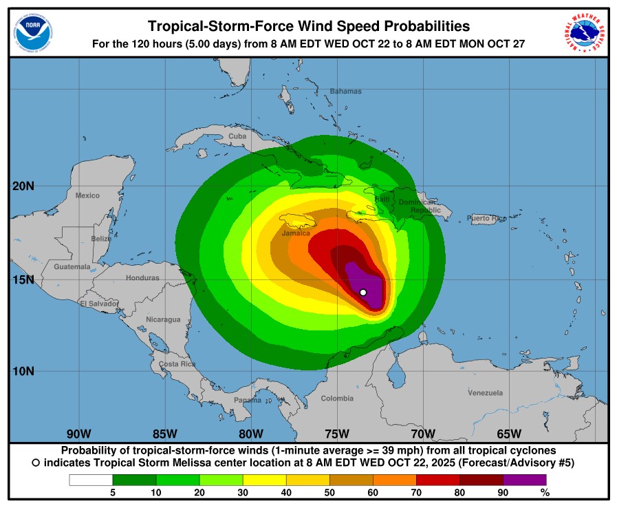 All eyes and ears are on Tropical Storm Melissa, now in the Caribbean Sea. As of 6:30:00 AM EDT on Thursday October 23, 2025, the National Weather Service Hurricane Center in Miami, Florida reports that Melissa is crawling over the central Caribbean sea and is expected to bring heavy rains and life-threatening flooding to portions of Hispaniola and Jamaica over the weekend.